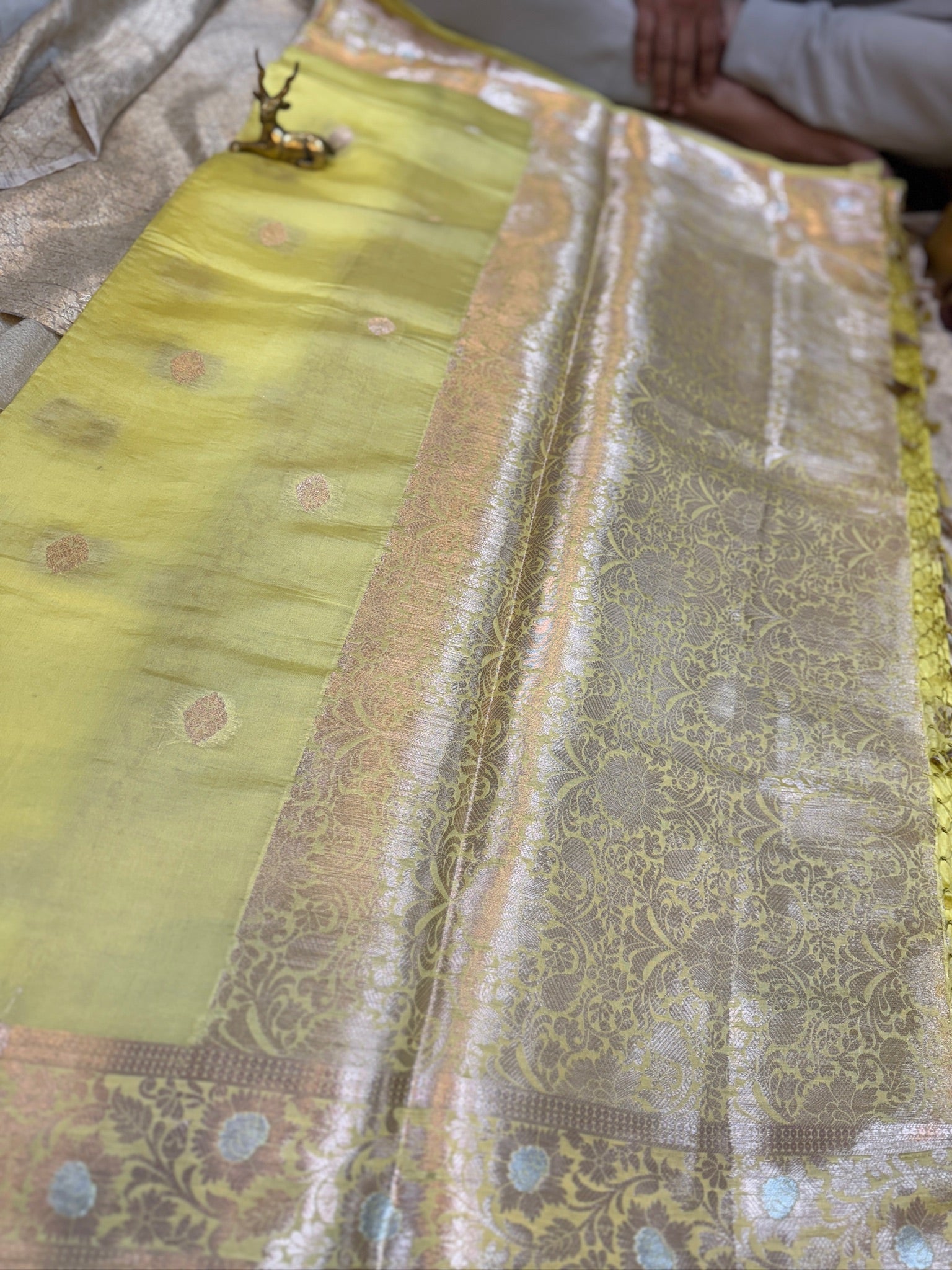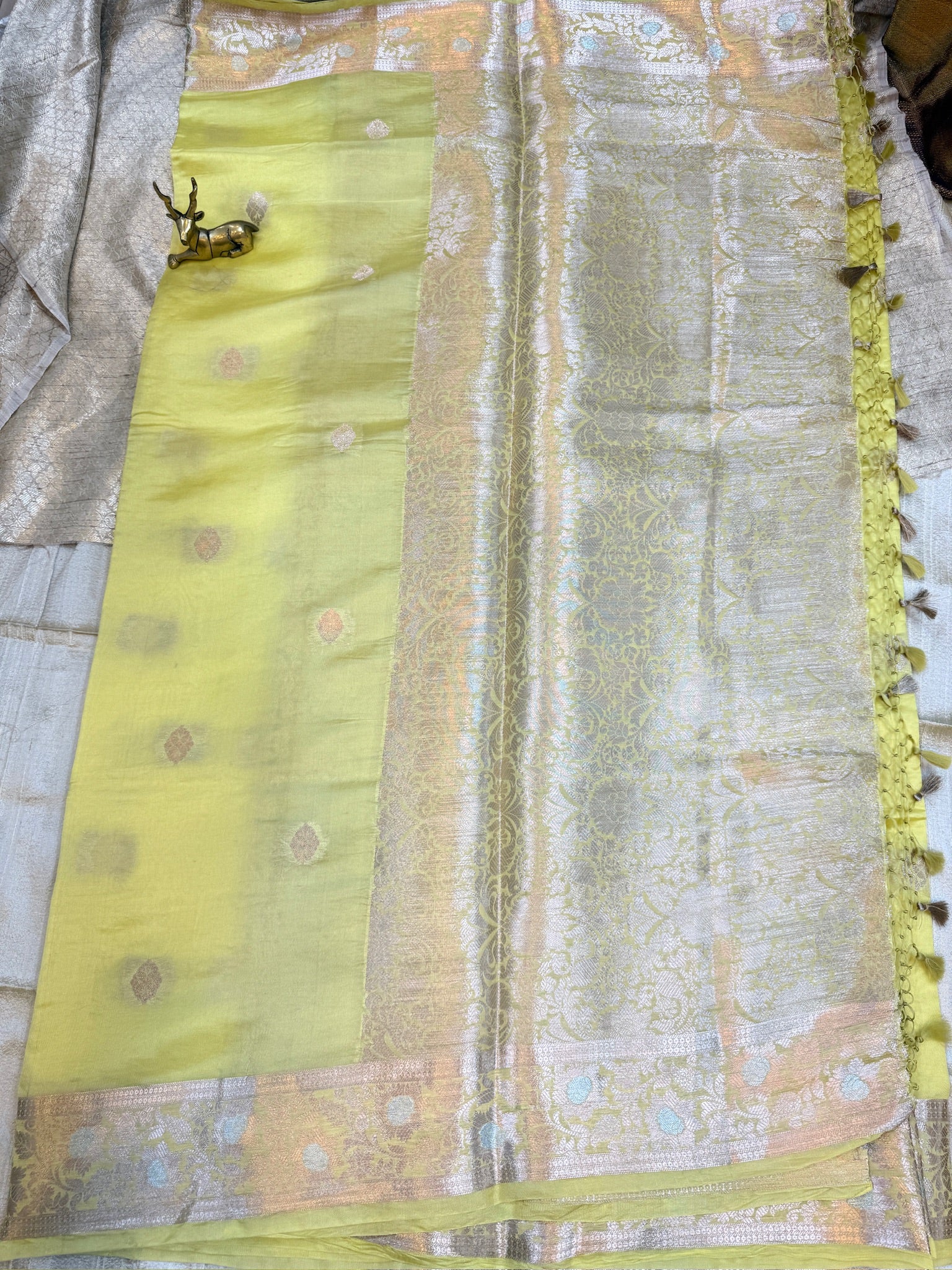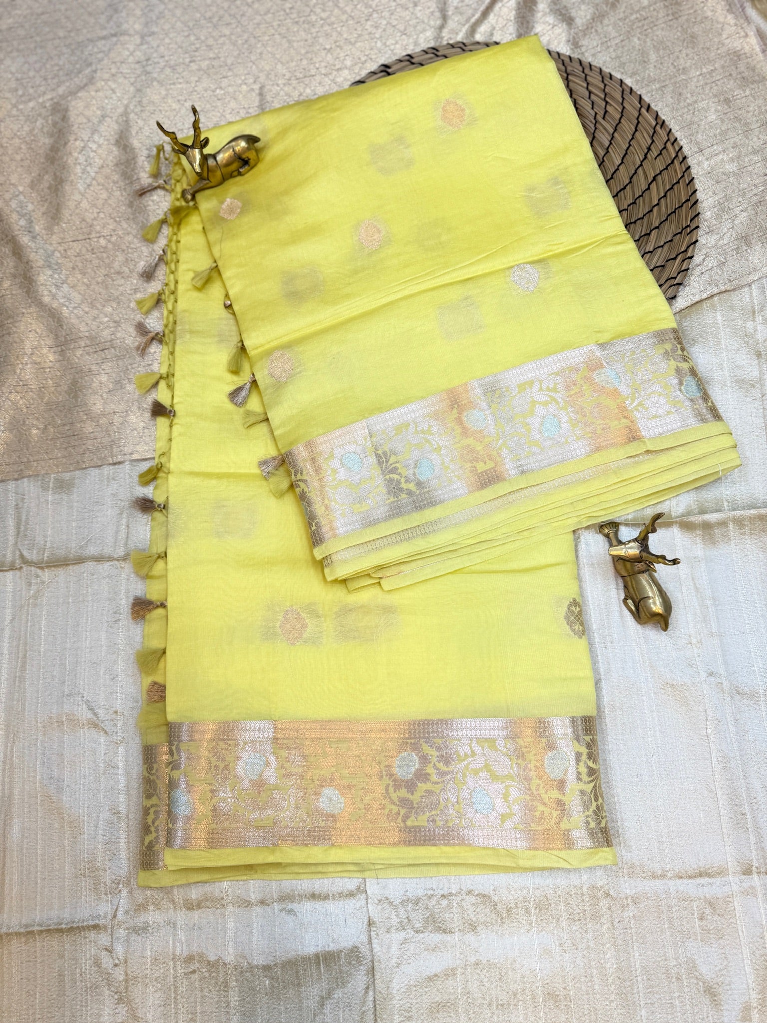 Banarasi Pure Raw Mango Katwar Silk Saree with small butta | Yellow