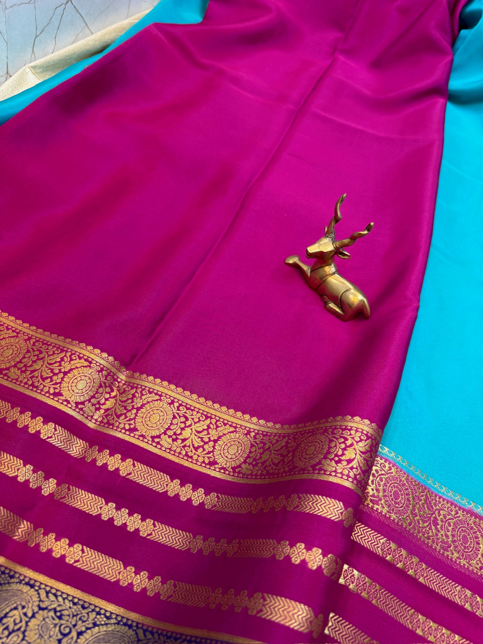 Pure Crepe Mysore Silk Saree | 3 Colour with Bentex border| Light Blue