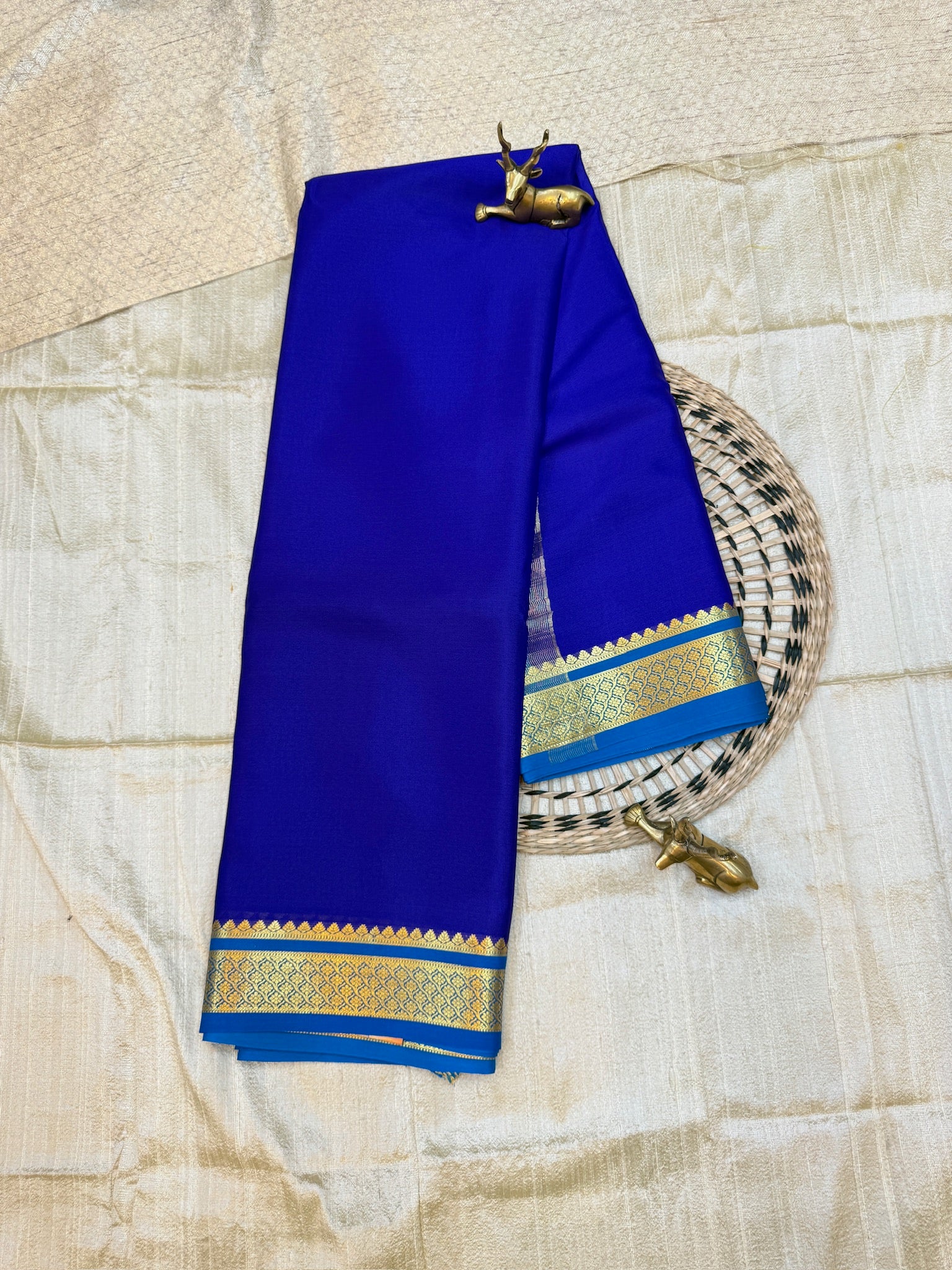 Pure Crepe Mysore Silk Saree | Royal Blue with Light blue Border