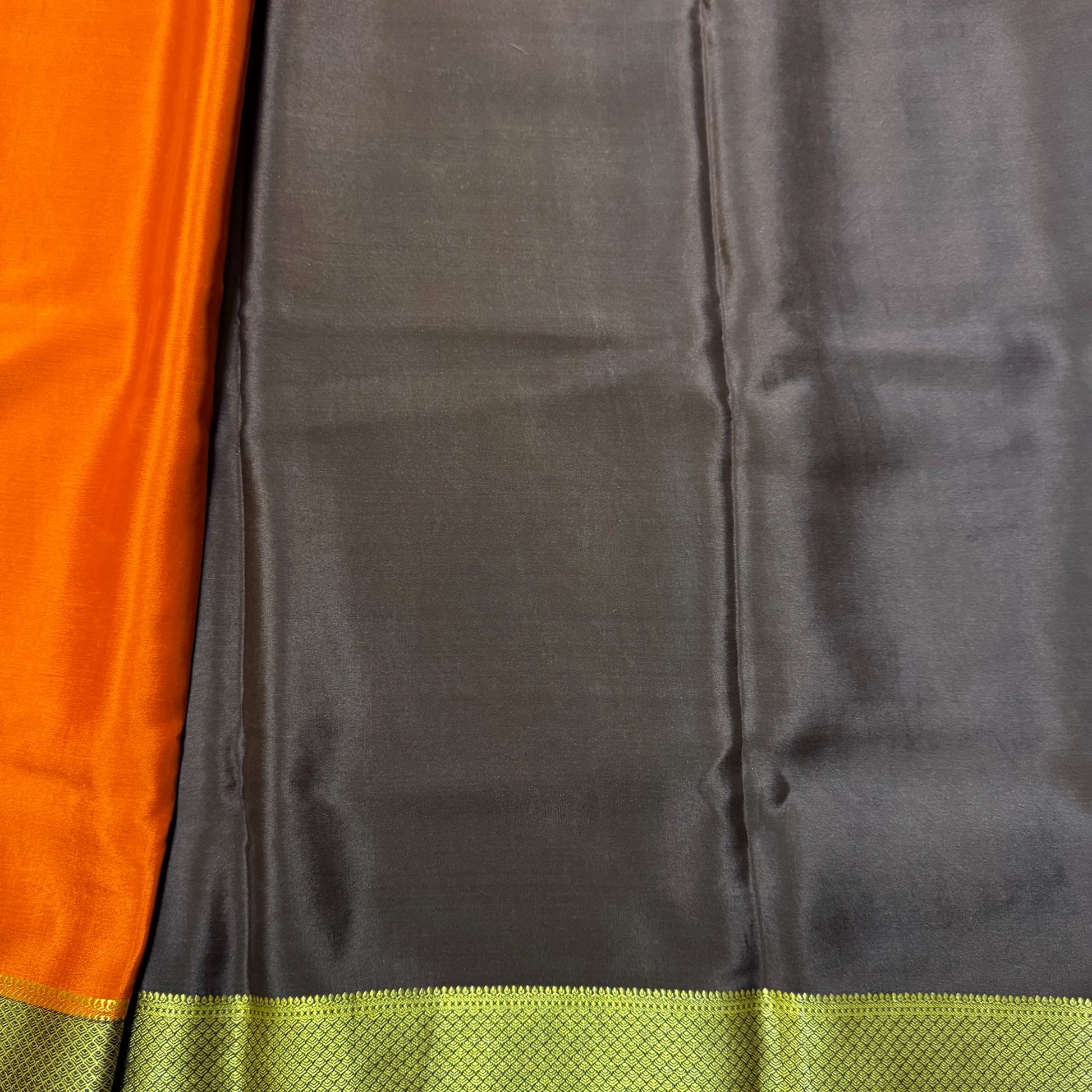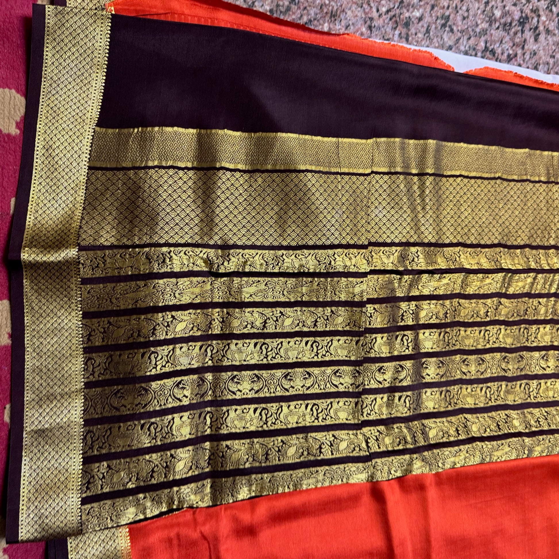 Pure Crepe Mysore Silk Saree | Rust Orange with Brown border 120 GSM