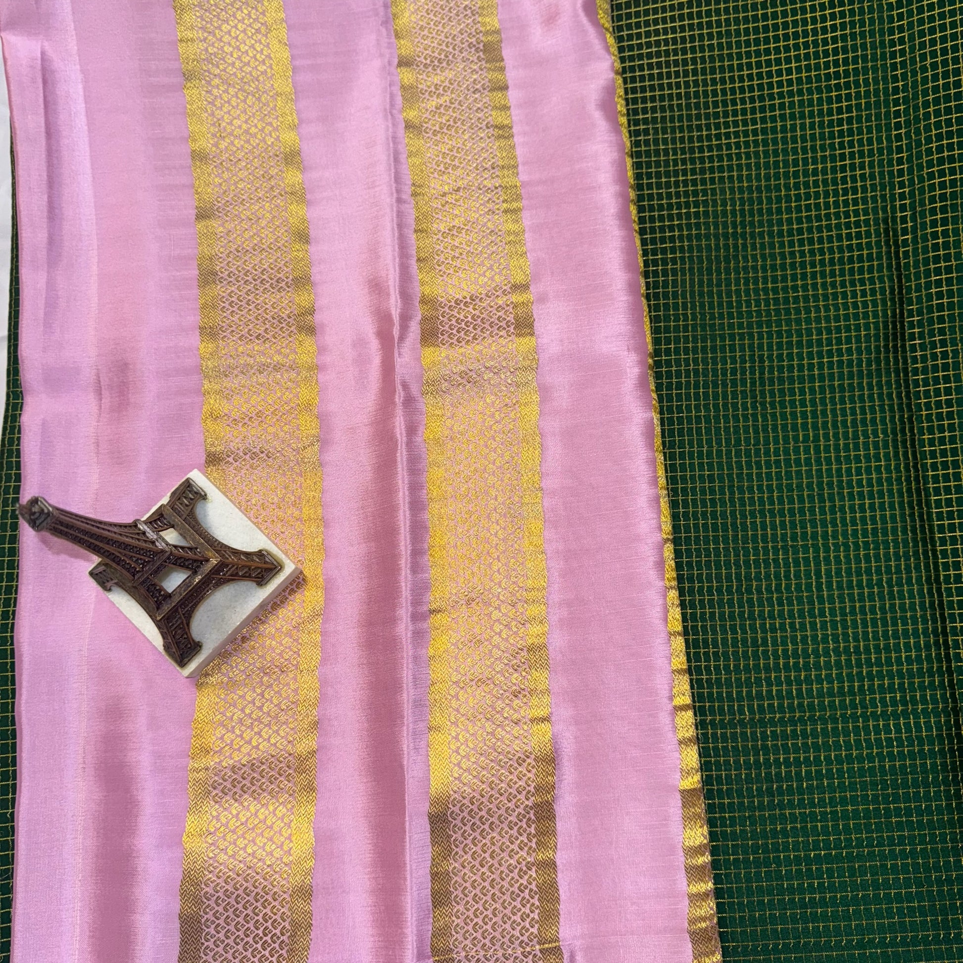 Pure Crepe Mysore Silk Saree| Small Checks design| Green