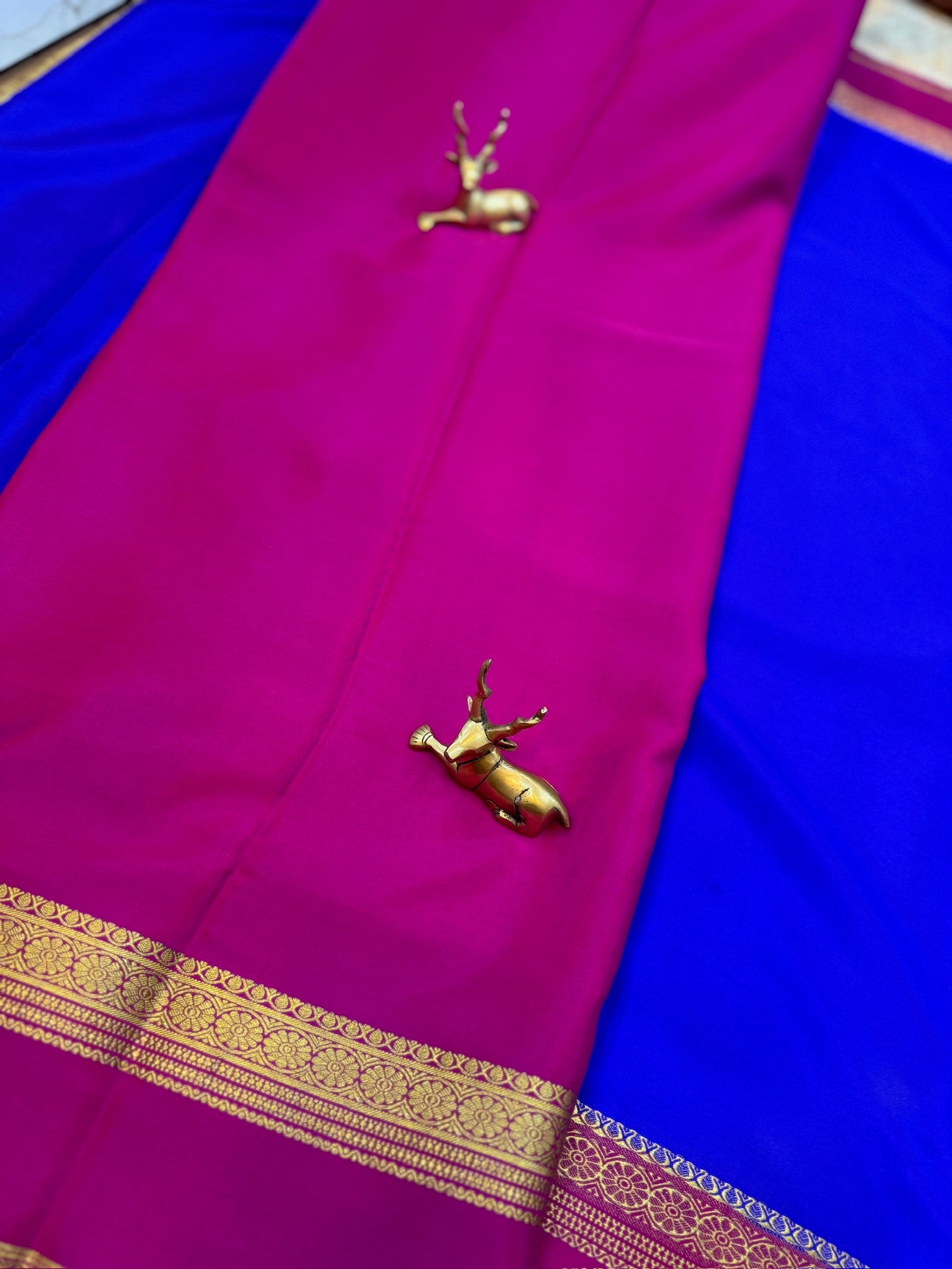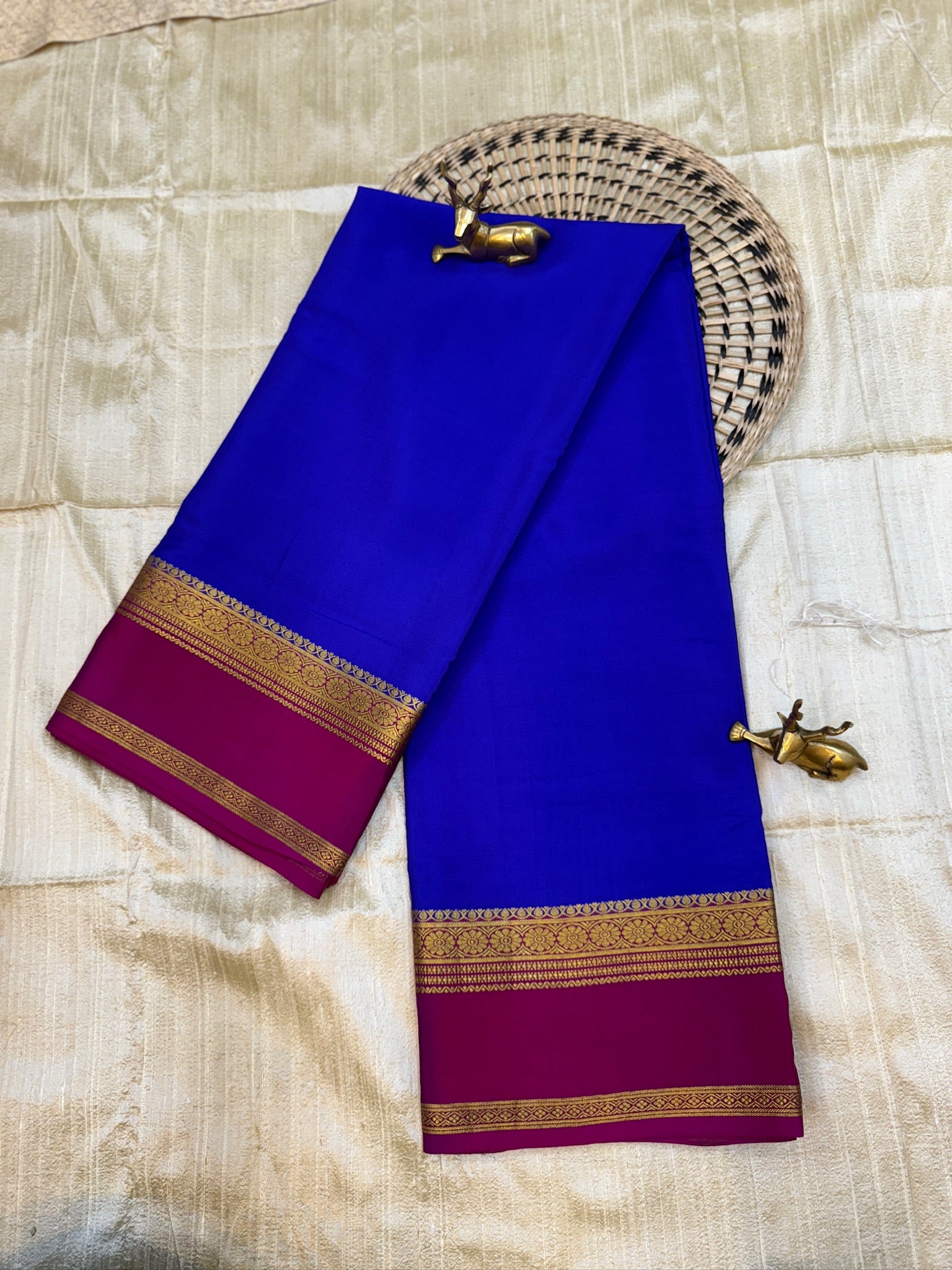 Pure Crepe Mysore Silk Saree with Bentex Border | Royal Blue with Magenta Border