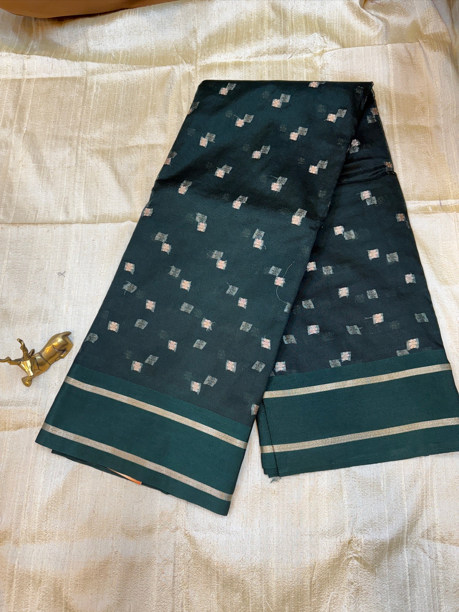 Semi Kora Silk Saree | Flower Butta | Green